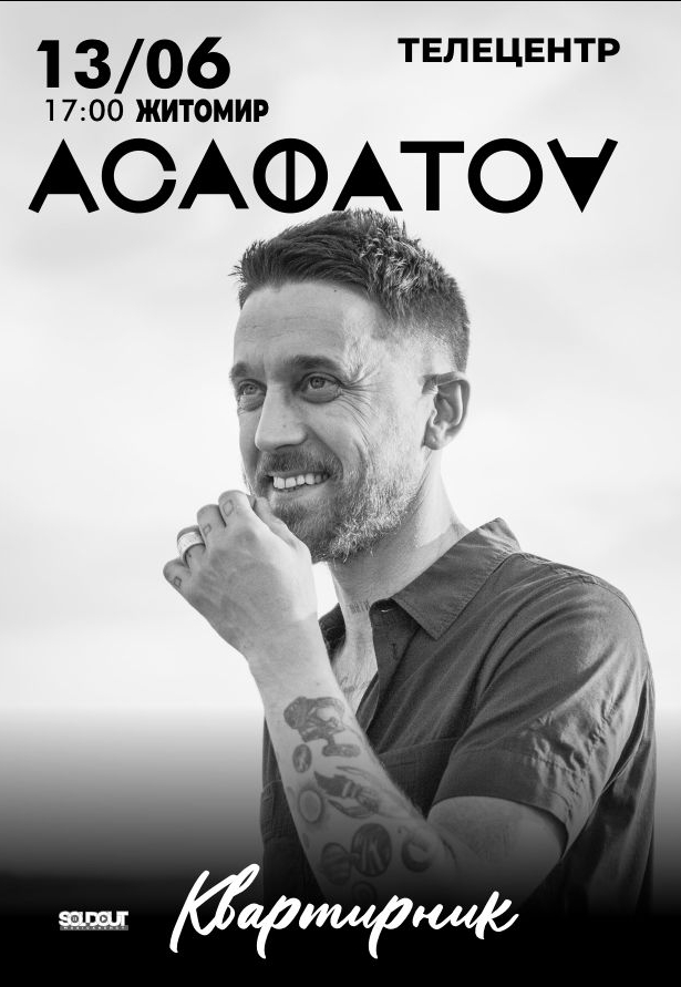 ACAФАTOV "Квартирник" состоится 13 июня 2026, 17:00, суббота в Житомирский областной телецентр. С помощью сервиса internet-bilet.ua, Вы сможете с легкостью забронировать, заказать и купить билеты на интересующий Вас концерт, спектакль, оперу, балет, мастер-классы, спортивные и детские мероприятия, оплатив их самым удобным для Вас способом: через интернет банковской картой VISA/MasterCard, наличными или курьером, если сделаете заказ билета c доставкой.